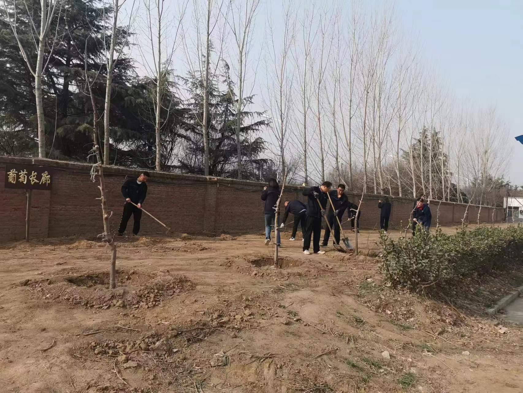 植树现场,大家互相配合,掘坑、扶树、培土,浇水,忙得不亦乐乎。新栽种的200多棵黄金维纳斯和精品红富士苹果树苗、30多棵葡萄树苗、10多棵桃树、月季花卉等为BETVLCTOR伟德国际1946曲阜基地再添一片新绿。今年开春以来,建筑劳务公司以划分责任区为单位对曲阜驻地绿地上死亡、损缺、老化的植物进行全面检查,进一步将春季绿化任务细化,责任到人。同时积极行动,通过挖掘机移栽、人工挖运等方式协调大量绿化植被,组织员工们在驻地内栽种。