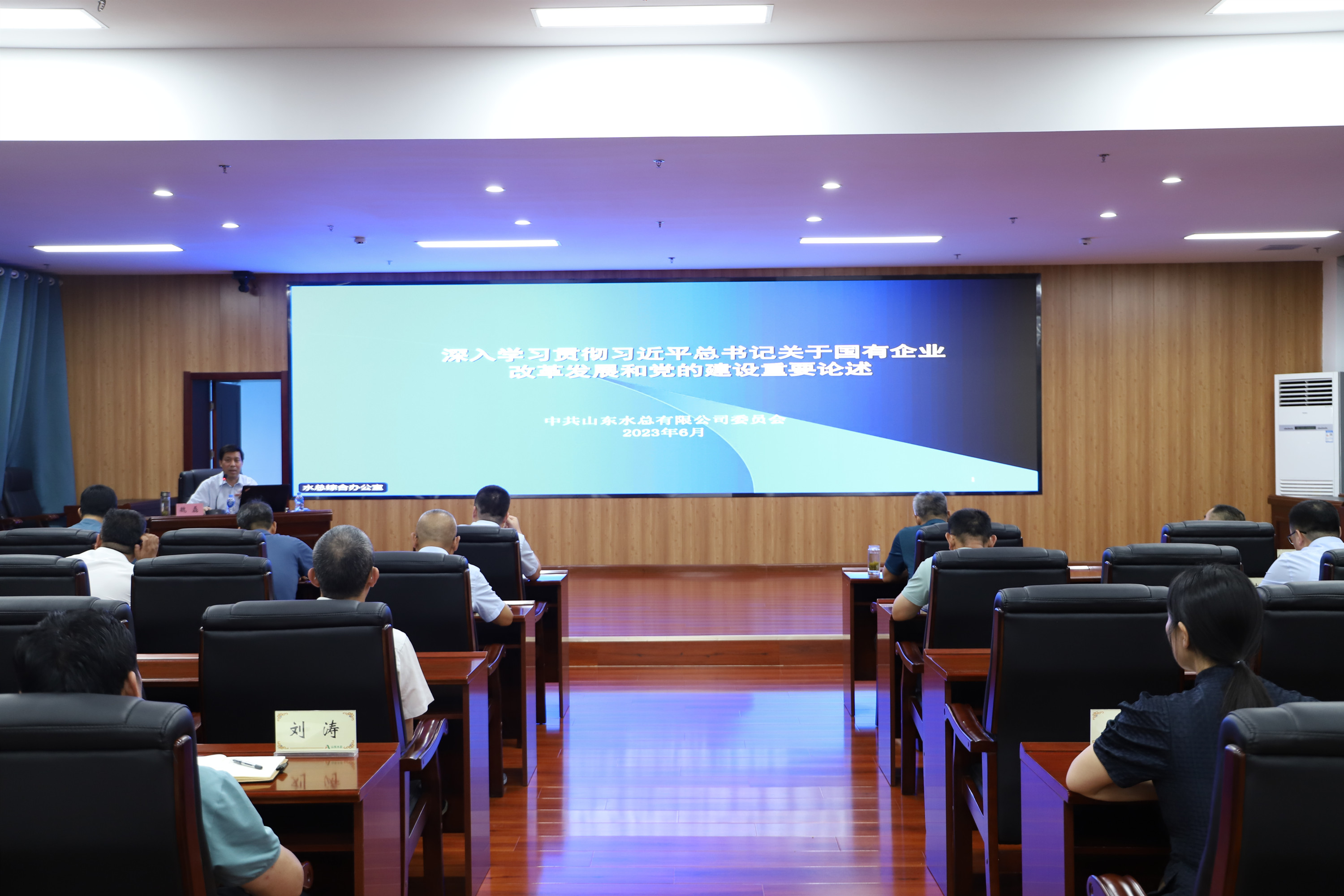 6月26日,公司党委邀请省委党校法学博士、教授魏磊在二楼多功能厅举办《深入学习贯彻习近平总书记关于国有企业改革发展和党的建设重要论述 》专题辅导。公司领导班子、高管、资深专家,总部各部室中层副职以上人员,各权属单位领导班子成员等参加培训,党委副书记、董事、总经理靳文硕主持会议。