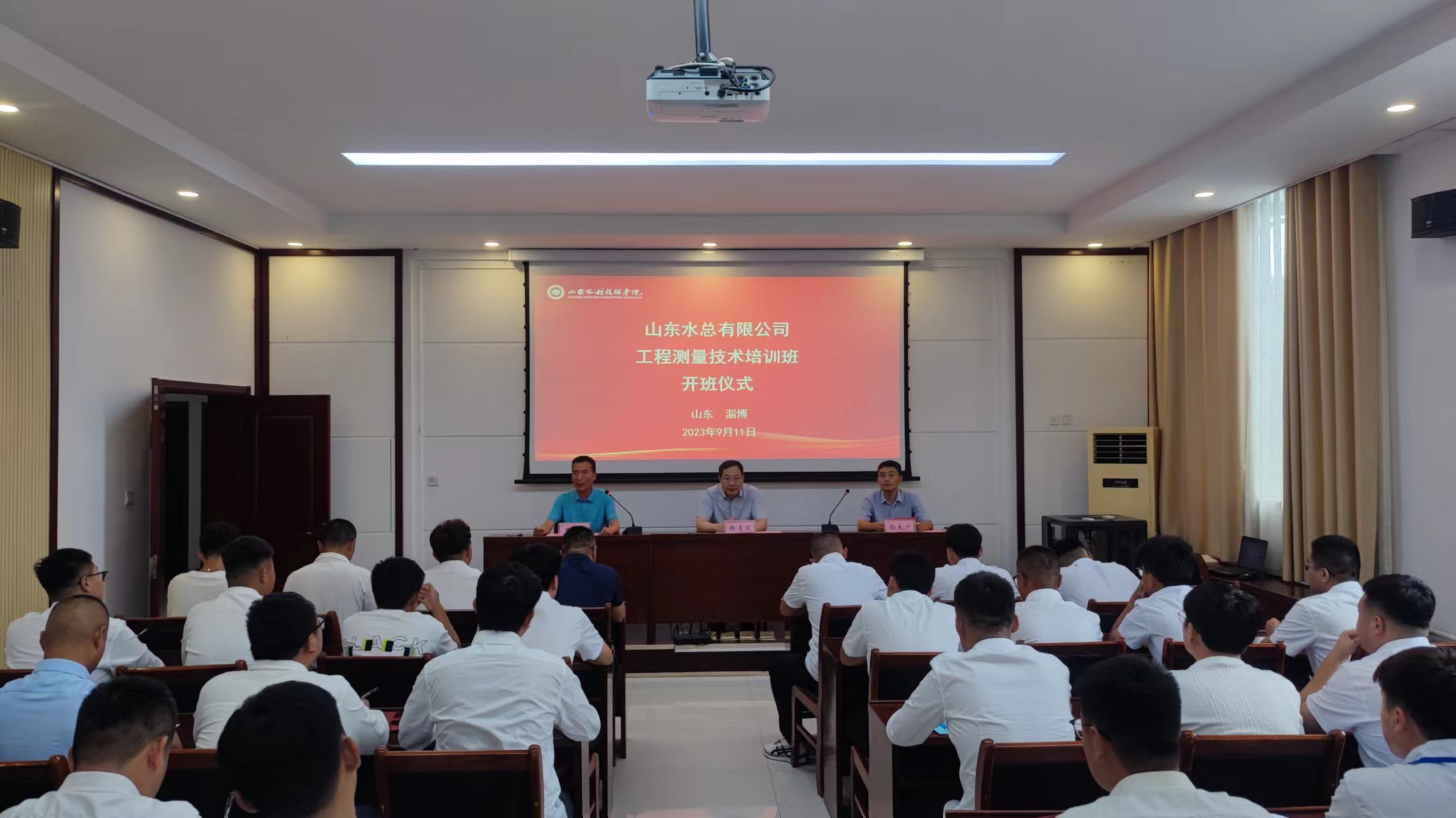 9月11日,公司2023年工程技术测量培训班在山东水利技师学院顺利开班,公司党委委员、副总经理杜贞义,山东水利技师学院党委委员、高级技工部主任孙大广出席培训班开班仪式,仪式由山东水利技师学院培训处副主任张岩主持。来自公司各权属单位30名测量人员参加本次为期5天的全脱产学习。