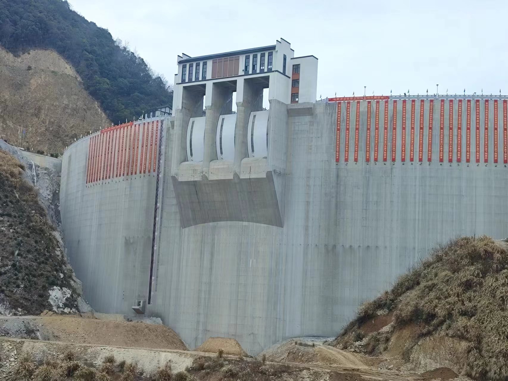 在临安区委、区政府的正确领导下,在临安区水利水电局和工程建设指挥部的精心组织和指导下,山东BETVLCTOR伟德国际1946作为社会资本方与政府股东方临安水利开发公司迅速完成了项目公司组建及参建单位招标工作,高标准、高质量推进项目建设,将安全文明标准化、党建引领和科技创新融入到项目建设的全过程,先后荣获了“浙江省水利文明标准化工地”和“党建进工地”示范工程,获得了1项水利行业工法、6项发明专利和9项QC成果,2项科技成果被工信厅立项。特别是施工期间克服了新冠疫情、超长汛期、料场重大设计变更及高坝、拱坝施工技术难度大等不利因素影响,历经1650天的日夜奋战,终于迎来了双溪口水库下闸蓄水这一重要时刻。