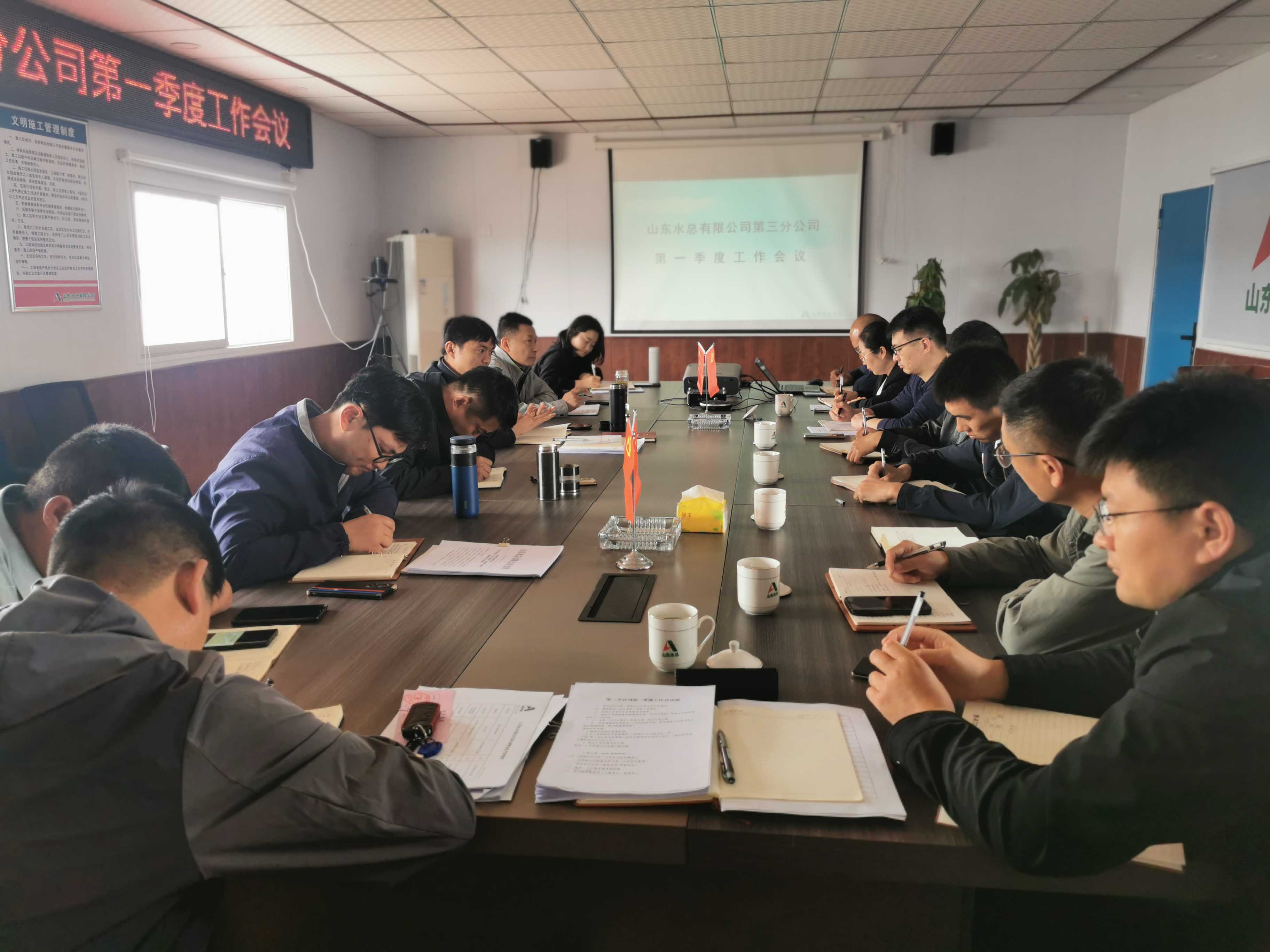 4月30日,第三分公司在沂南县岸堤水源项目召开2024年第一季度工作会议,会议由第三分公司党支部书记、总经理徐浩主持,副总经理、主任专家、督导专员、项目负责人及部分员工参加。
