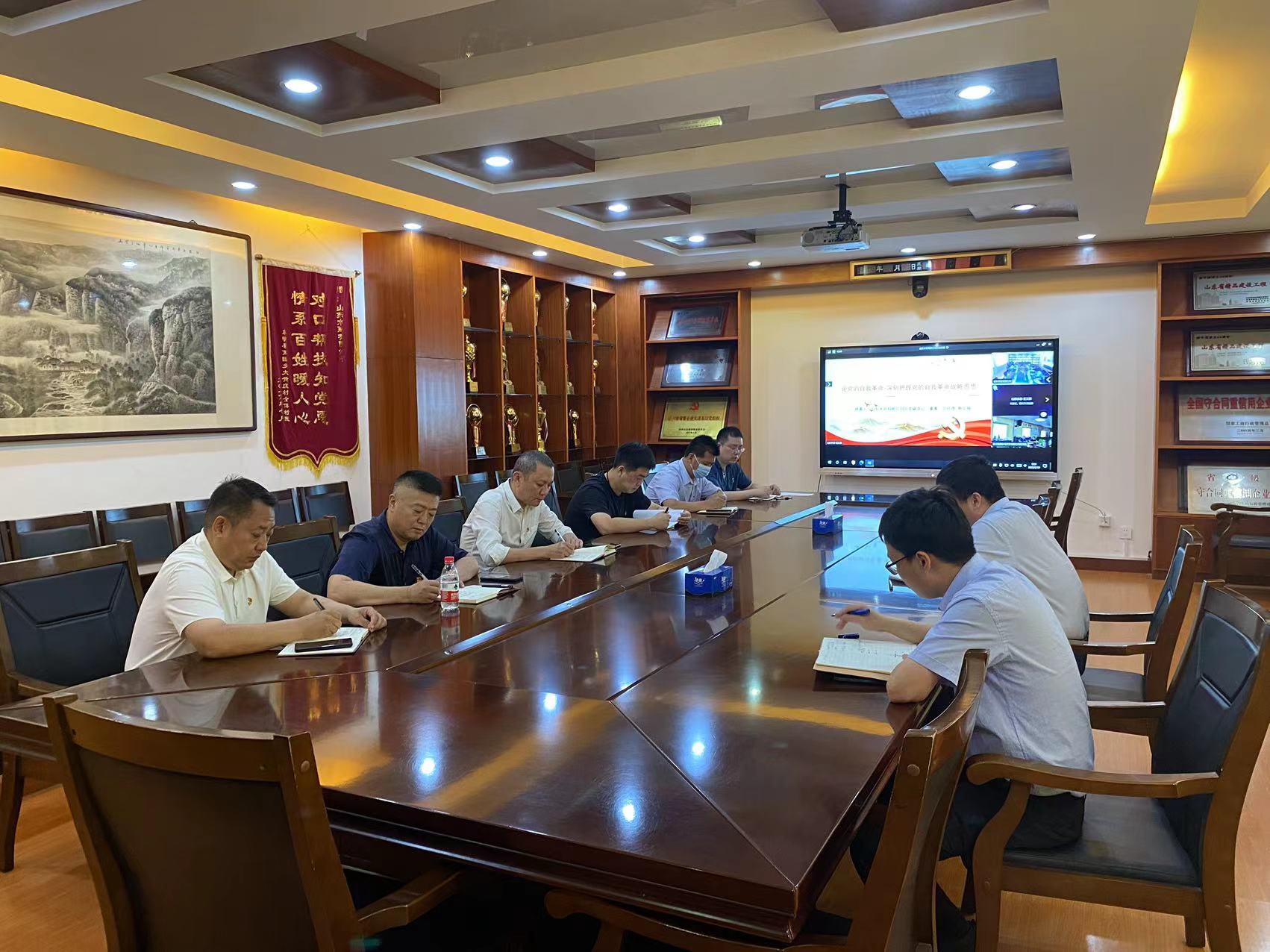 6月19日,公司党委副书记、董事、总经理靳文硕以“论党的自我革命—深刻把握党的自我革命战略思想”为主题,为建筑劳务公司党支部、杭州鲁润公司党支部讲授主题教育专题党课。