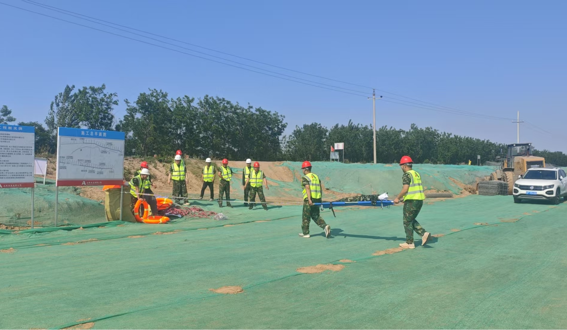 为筑牢防汛安全防线,切实强化全员安全防范意识,全面提升突发事件应急处置能力,近日,第二分公司滹沱河防洪达标整治项目开展2025年度防汛、消防综合应急演练。项目业主单位、施工单位、监理单位协同参与,饶阳县水利局代表到场观看。